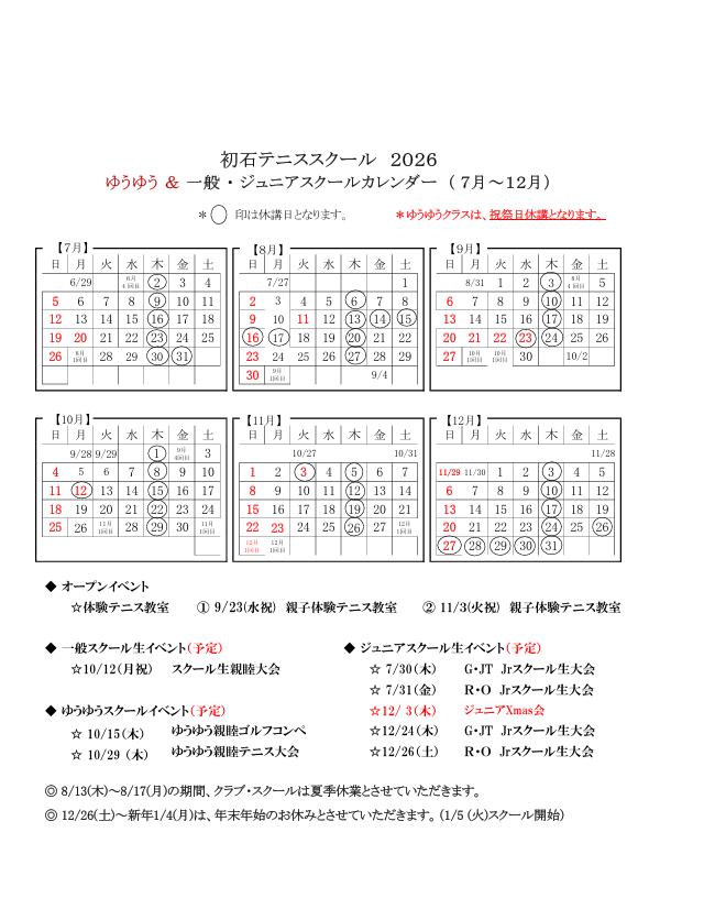 2025年 7月~12月の