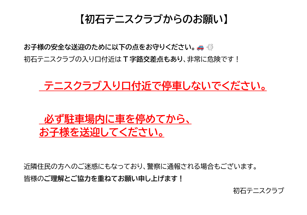 重要 クラブからのお願いです